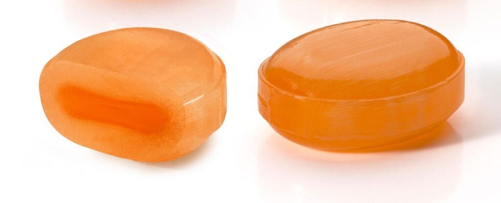 The production speed can reach 2T per hour (considering a standard product dimension and weight). It’s our recommended solution for confectionery or pharmaceutical producers who need any kind of high volume and high quality lozenges production (sugar, sugar free, filled or not filled) or any producer who needs higher production volumes.