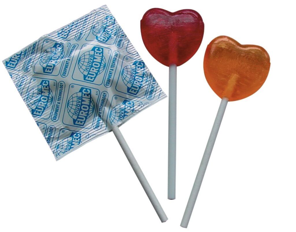 Immediately after forming, an automatic transfer unit delivers each lollipop directly to the integrated wrapping machine, completing the process with a secure four-seal sandwich wrap style.